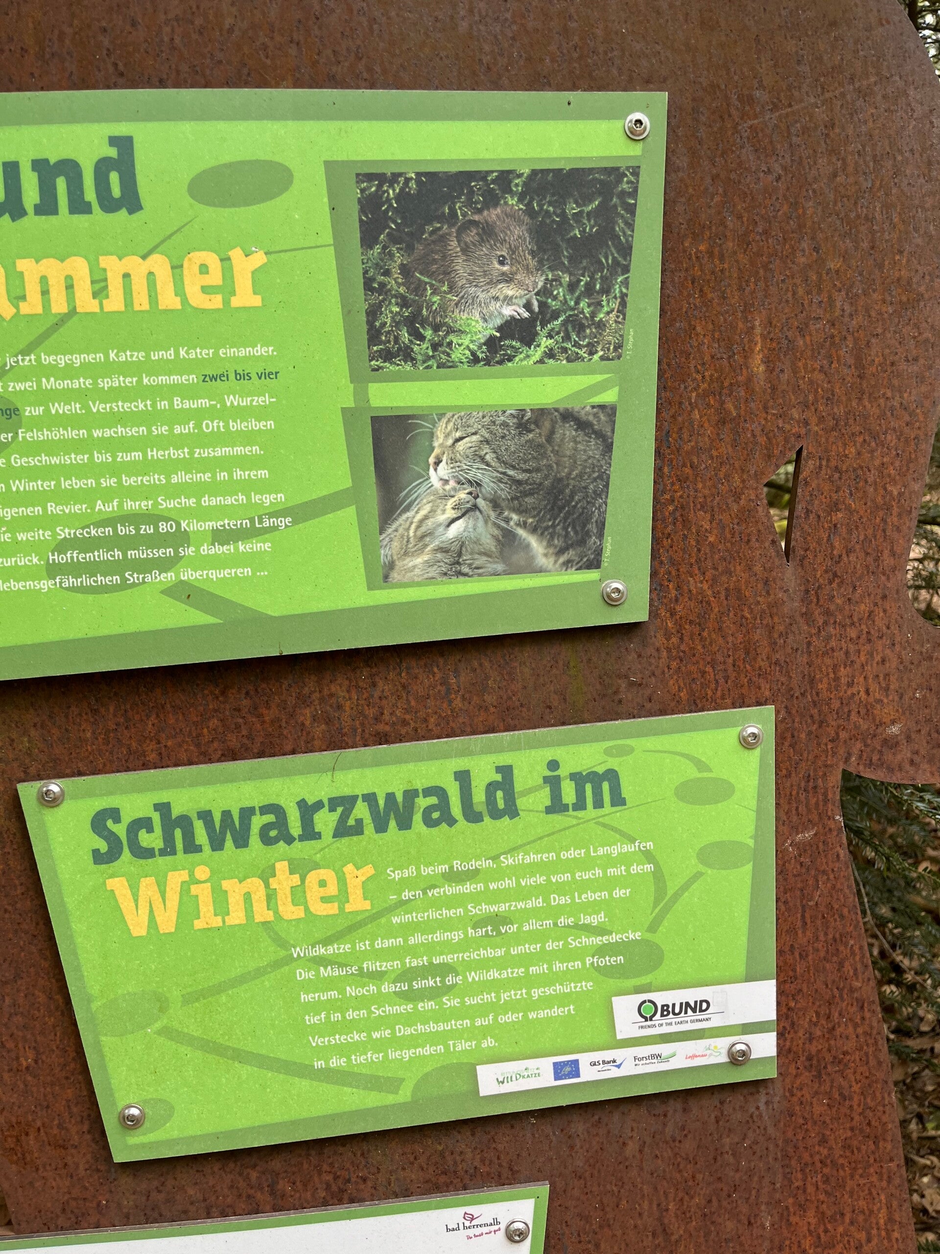 As we live close to the Black Forest, we visit this place very often, and there is planty to discover and experience on the Wildcat Trail (Der Wildkatzen-Walderlebnispfad) in Bad Herrenalb. The 6 km themed circular trail is full of