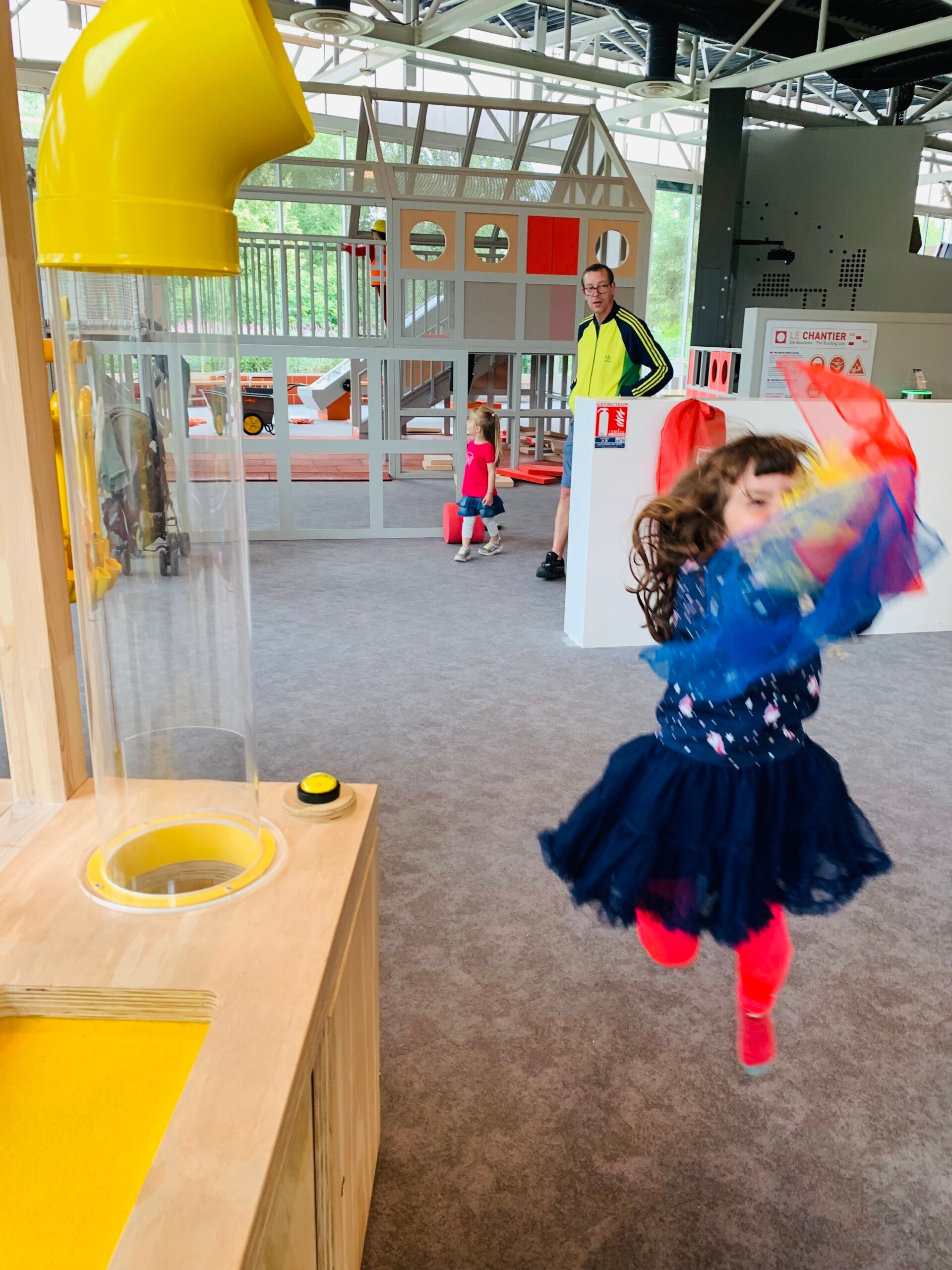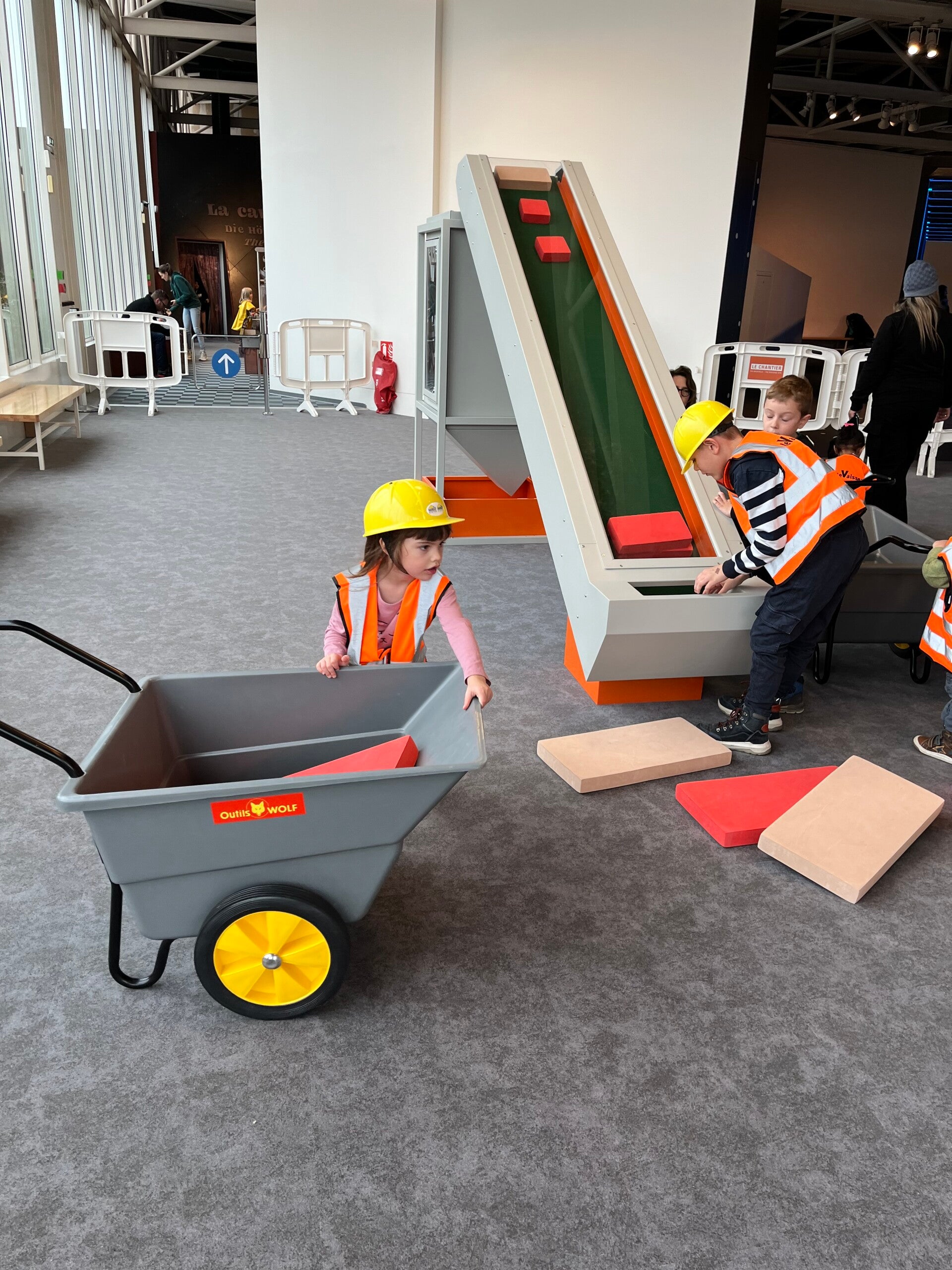 Our second favorite was definitely the construction area. There’s something endlessly satisfying about building giant structures out of oversized foam blocks — and something even more hilarious about watching them collapse in seconds. We tried towers, bridges, walls, even a “house,” and every design came with its own little engineering lesson (and a lot of laughter). It’s the kind of space where creativity takes over and teamwork happens naturally, without anyone even noticing.
